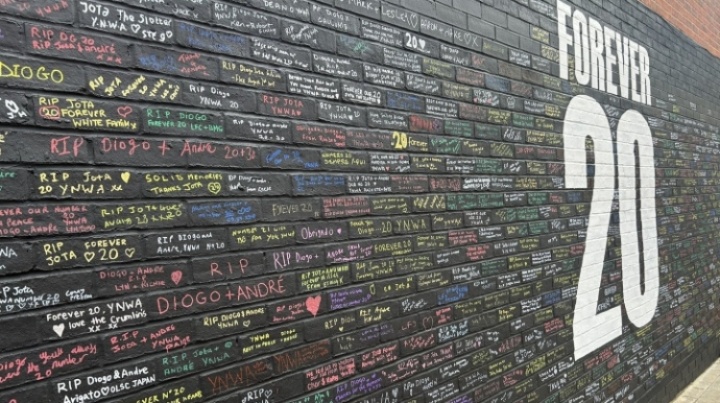 密密麻麻❤️安菲尔德“若塔墙”写满了球迷的悼念:FOREVER 20